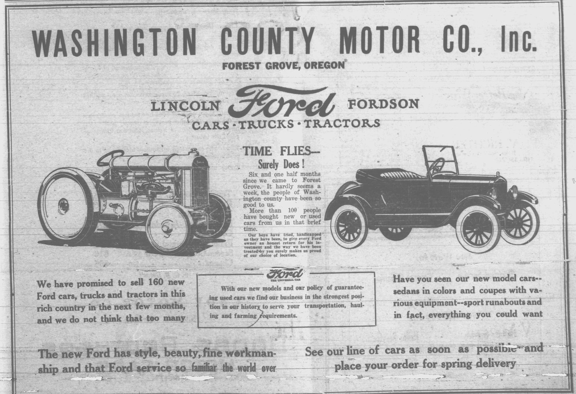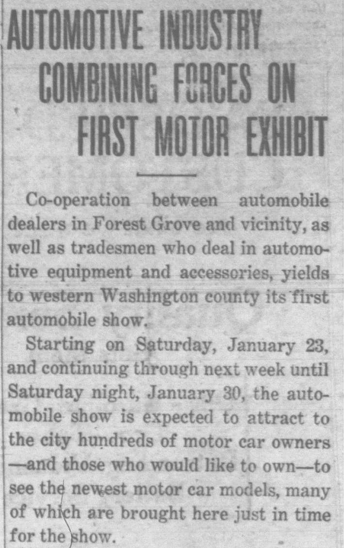 In this column, we take a look back one hundred years ago in Forest Grove, Banks, Gales Creek, and other rural communities in western Washington County. This week, the clips come from the Washington County News-Times and the Hillsboro Argus, each published January 21, 1926.