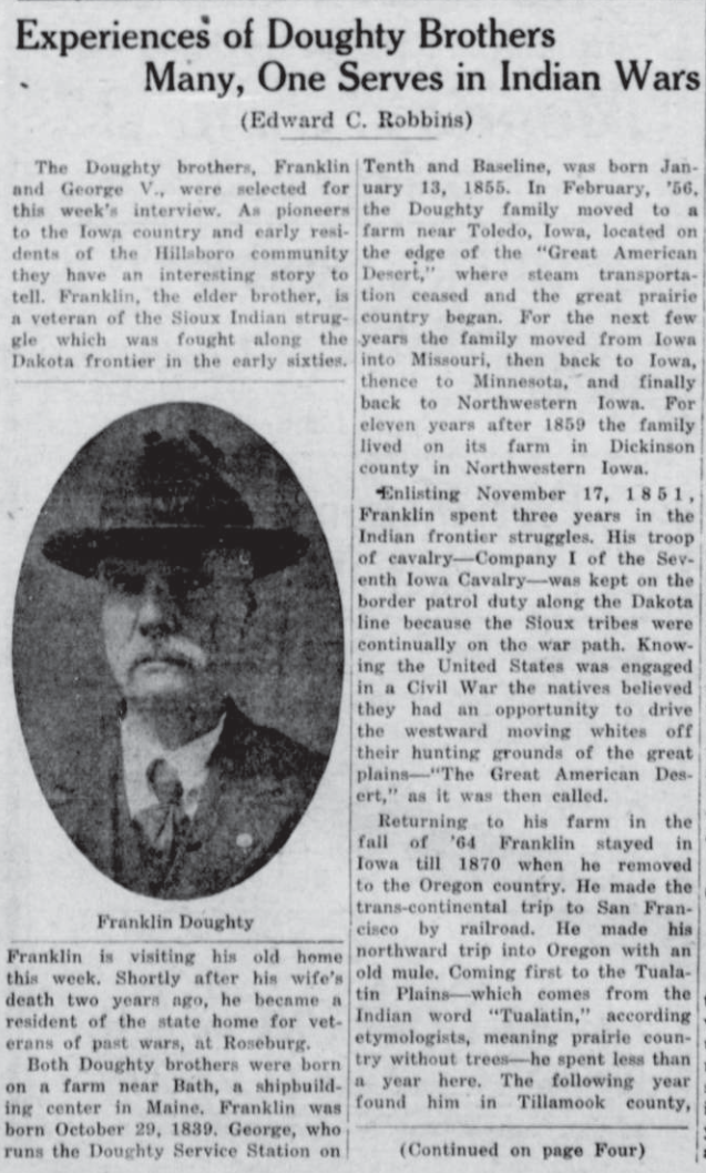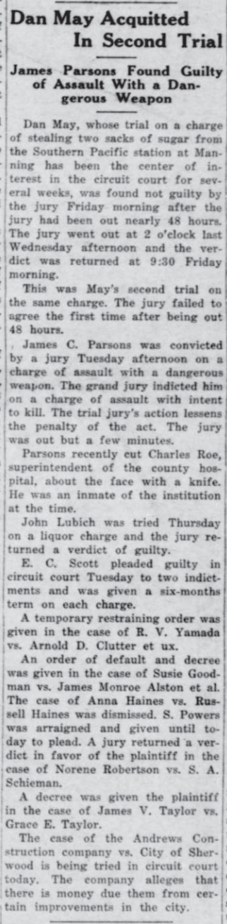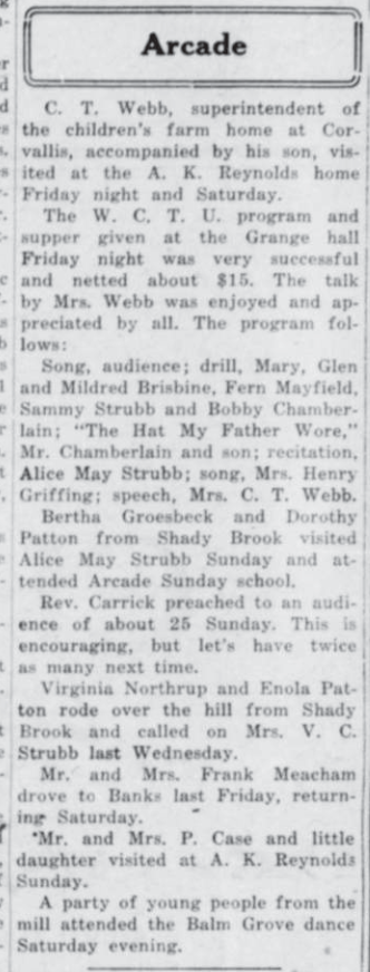 These news clips are selected for news events in and around Forest Grove and Banks that I believe would have been of significance to readers of the time, or of interest to readers of today. They are presented as-is, and without comment. At the time, the newspapers of the day often expressed viewpoints that today would be considered racist, xenophobic, and sexist, frequently using slurs to describe ethnic groups and often stepping outside the norms of what we consider to be ethical journalism today.