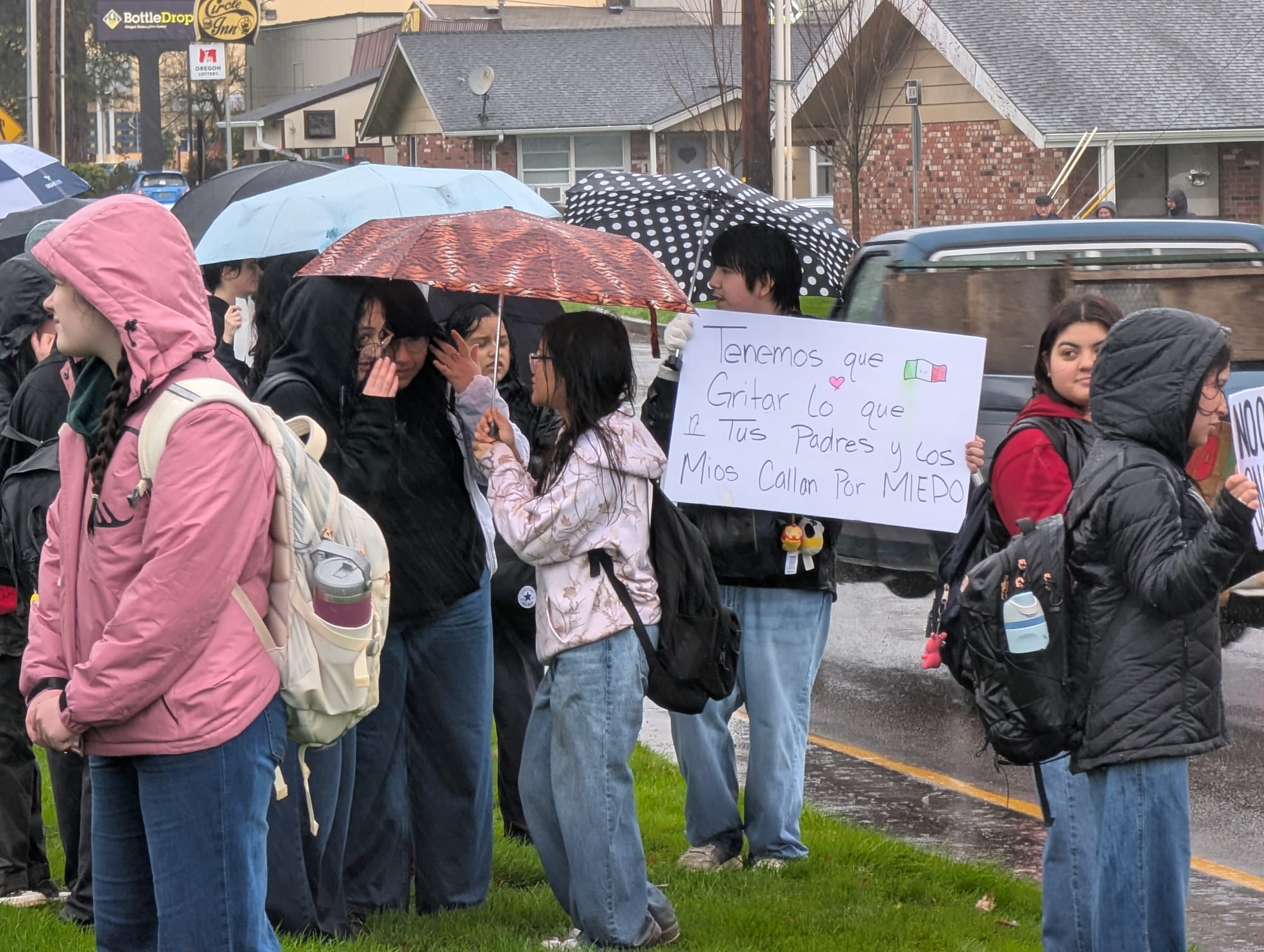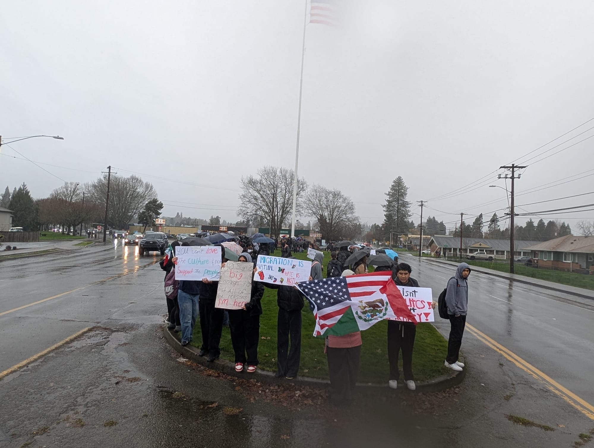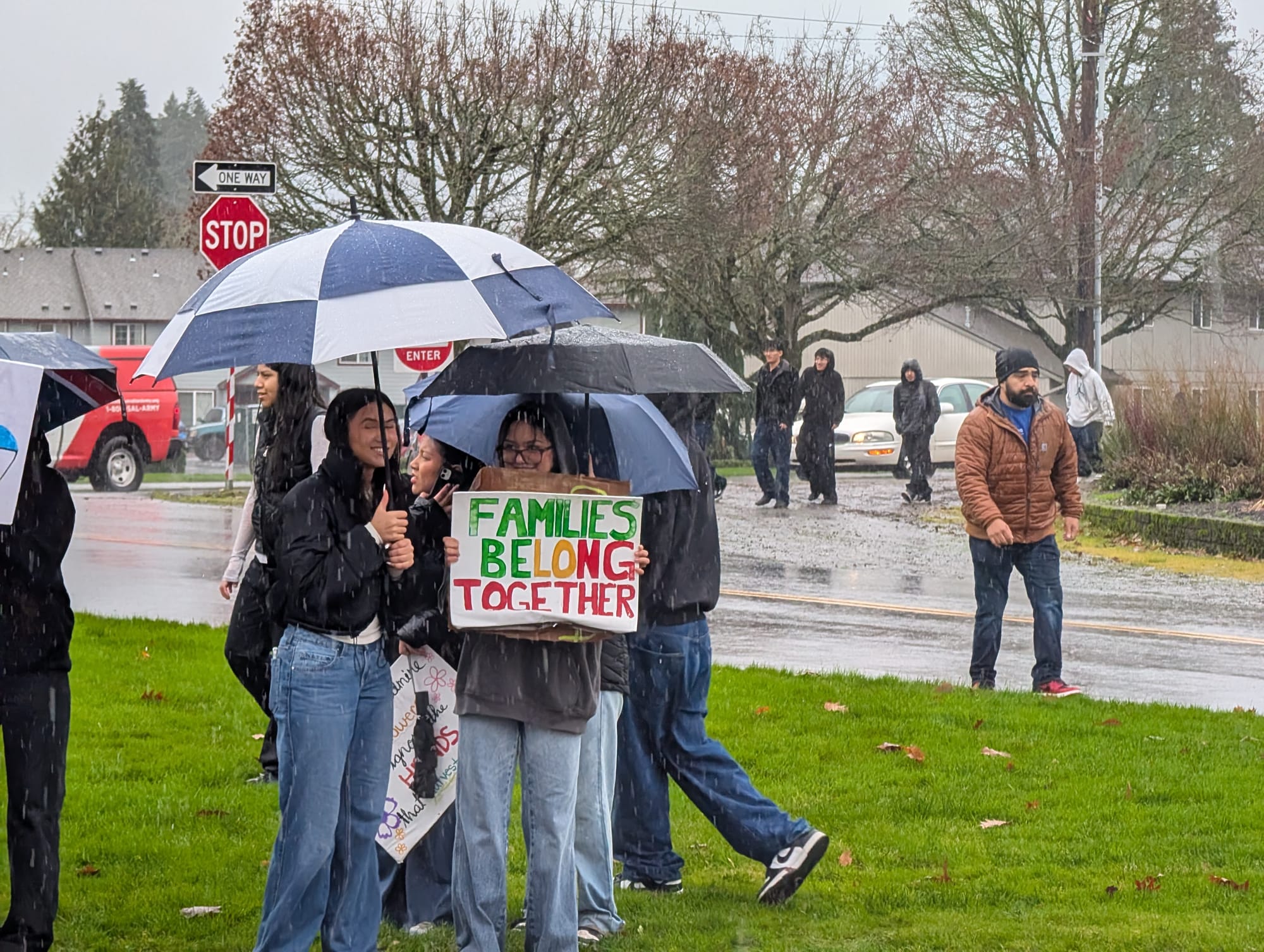 Students in Forest Grove as part of a student-led protest against ICE on Monday, December 8. Photos: Chas Hundley